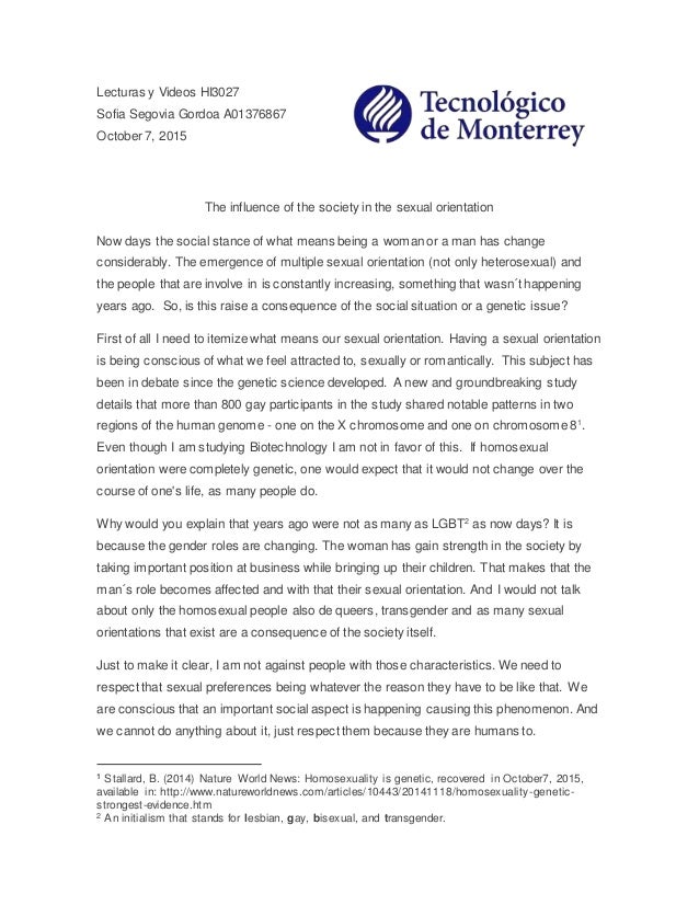Sex is defined as the biological differences between men and women whereas gender is the fashion in which society highlights the sexual differences among both species (Siann, ). From the moment we are born, our lives are shaped by our biological identity, which in turn, is further influenced by an unlimited number of social, cultural, environmental and psychological What differentiates one’s gender from one’s sex? Sex is biological while gender is social. In this sense, a person whose sex is female can have a male gender if some of the tasks she does are more attributed to males. But society has greatly erased this distinction and instead created gender differences that relate to one’s sex Essay: The Difference Between Sex and Gender. In today’s society sex and gender seem to have two separate connotative meanings. Sex is a more scientific term that explains physical traits and sexual preferences. Gender carries a more social tone